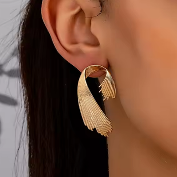 Pendiente de tuerca de Metal Irregular Punk exagerado, venta al por mayor, pendiente de hoja de loto de concha plisada chapada en oro, joyería para mujer